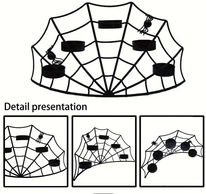 Spider-Themed Candle Holder Set with Iron Web Design,