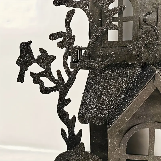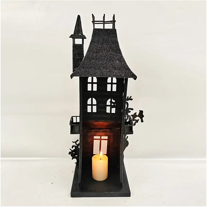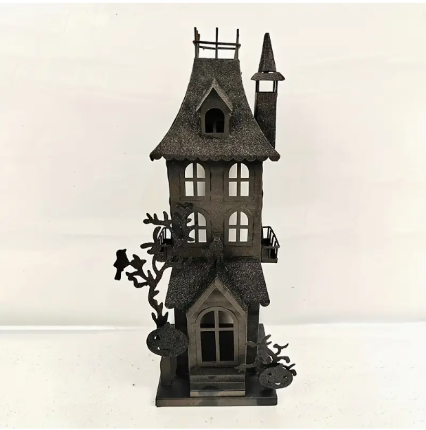 2-Tier Pumpkin & Haunted House Design Iron Tabletop Decor,